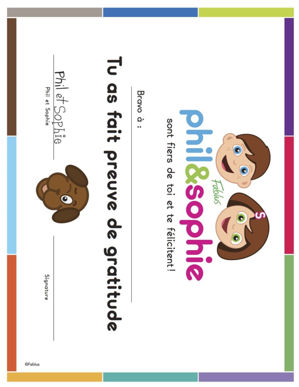 Note : À la fin de l’activité, il est possible de remettre un diplôme de gratitude aux enfants. |
