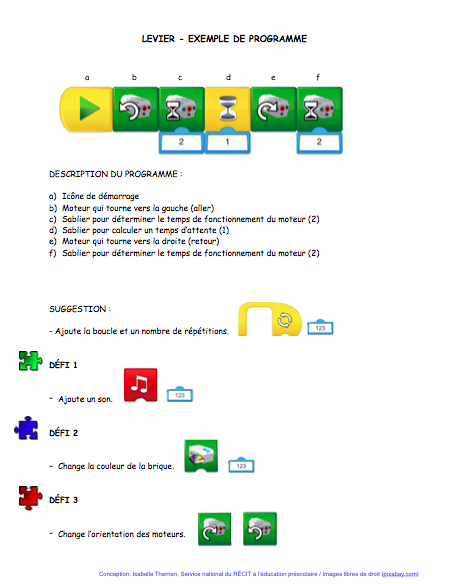 Voici un exemple de programme que vous pourriez réaliser pour faire fonctionner le levier.