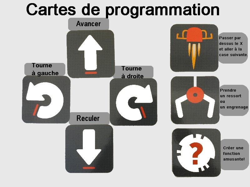 Rappel de la signification des cartes de programmation (affiche en PDF téléchargeable créée par Éric Letendre).