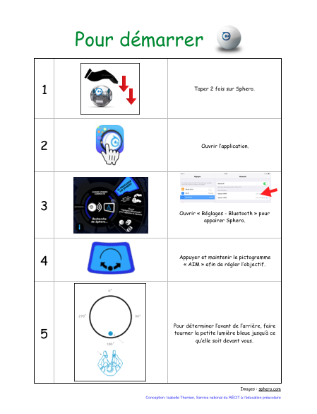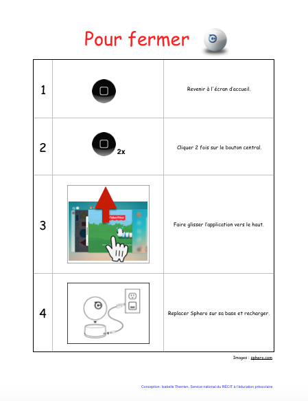 | Affiches pour enseigner aux élèves comment connecter Sphero à la tablette et fixer son assise (à imprimer) : | ![]() ![]() |
