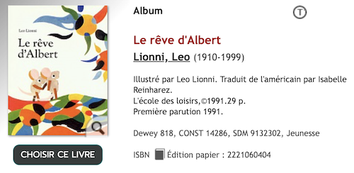 | Le petit artiste, par Gaëtane Lannoy, Éditions Casterman, Coll. Les grands livres | Le rêve d'Albert, par Leo Lionni, Éditions L'école des Loisirs |