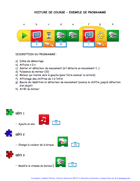 Vous pouvez imprimer une affiche sur laquelle vous retrouverez cet exemple de programme ainsi que des défis pour aller plus loin... en format PDF ICI.